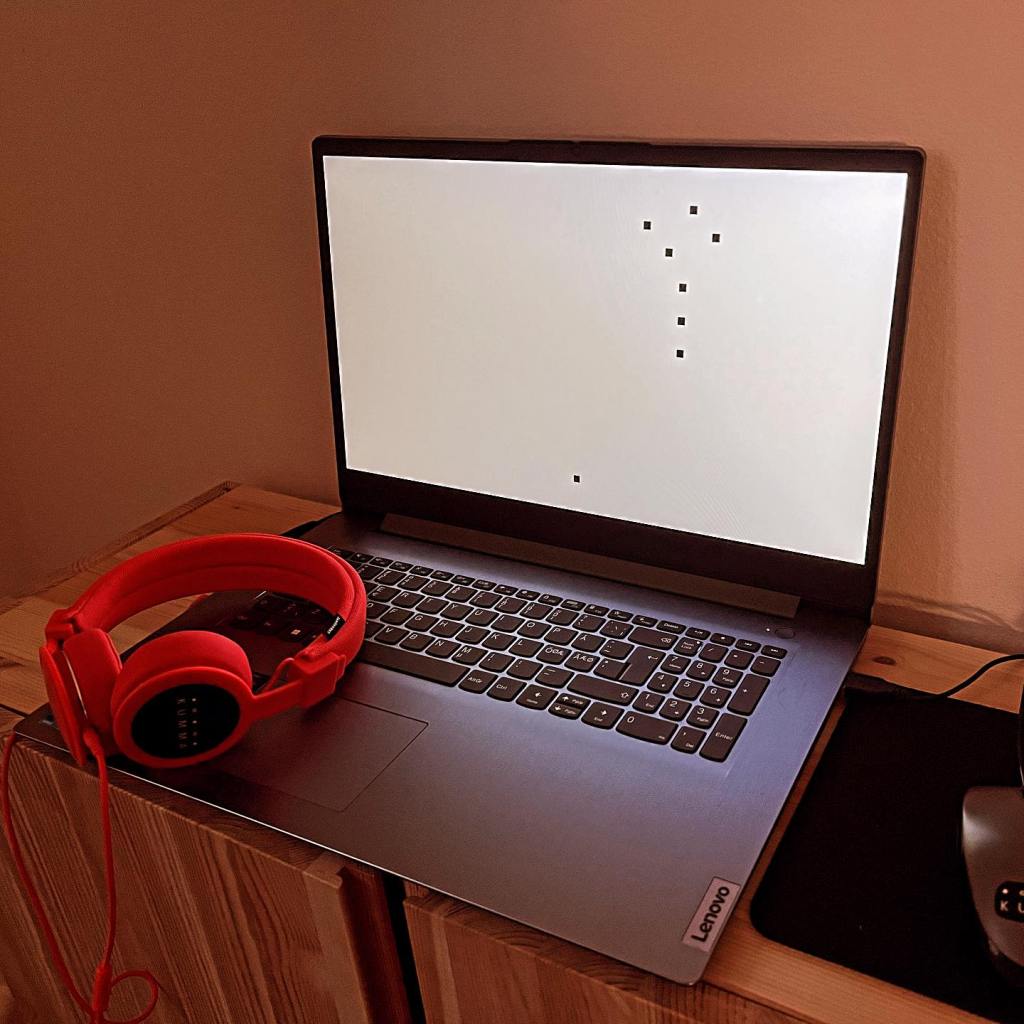 It wasn’t until the fourth exhibition, in September 2023, that we finally dipped into some retro games aesthetics — close to my heart through the phenomenon of game jams. We featured the massive collection of Samuli Jääskeläinen, who has participated in over 100 game jams since 2012! Many of his pieces were performative, including a wild experiment where games were made while riding a tandem bicycle. Although the bike itself was too large to fit in our cozy 15-square-meter gallery, about 50 of Samuli’s jam games were available to play during the show.